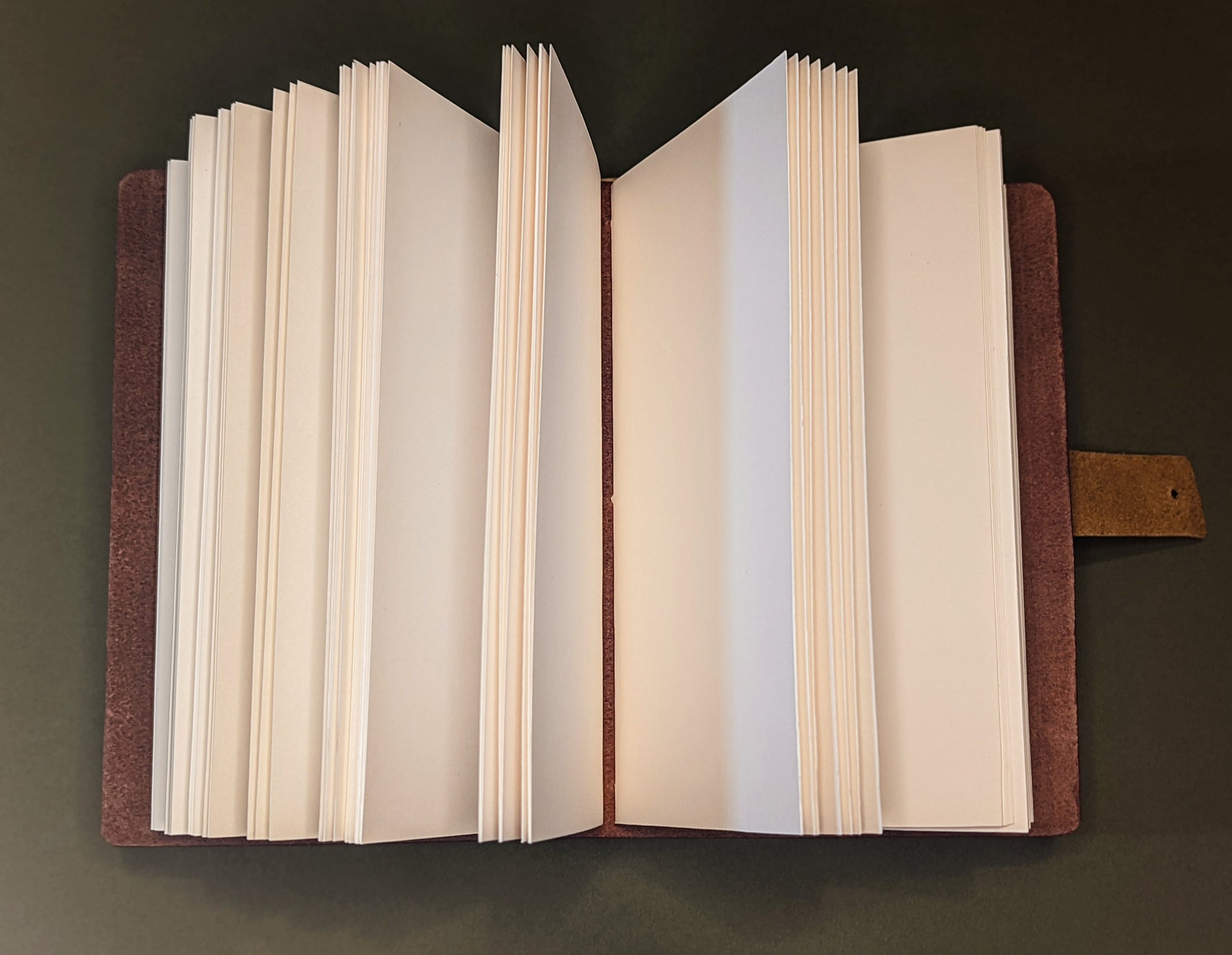Our daughter was very emotional when she opened the (beautifully packaged - thank you Caitlin), journal, and said it was the best gift she'd ever received. It couldn't have been more practical, with both writing and sketching paper, also the clip & bookmarks in it; all in a stunning, bound, leather case.